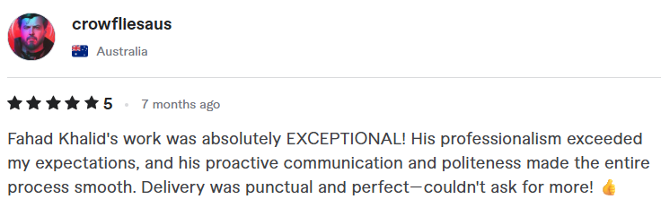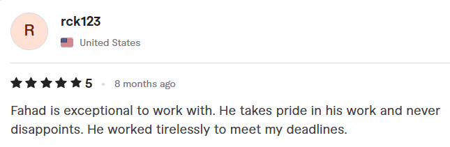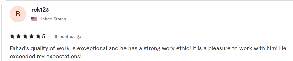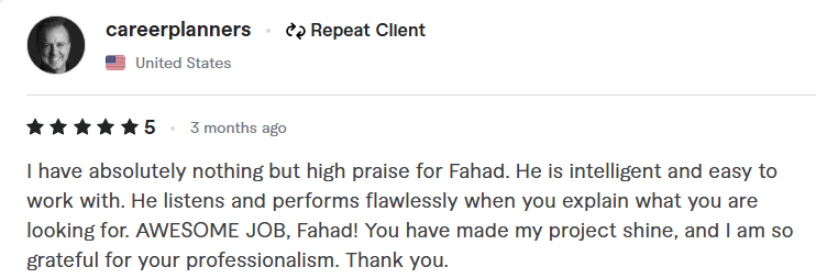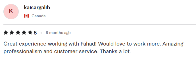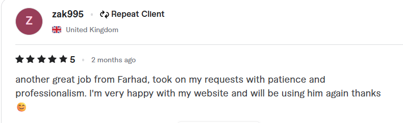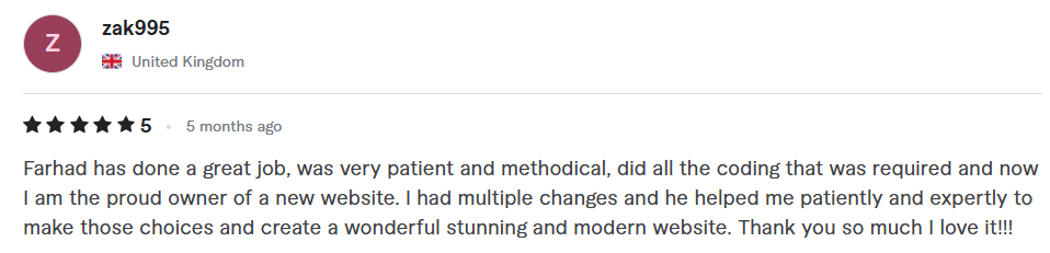 Fahad has done a great job, was very patient and methodical, did all the coding that was required and now I am the proud owner of a new website. I had multiple changes and he helped me patiently and expertly to make those choices and create a wonderful stunning and modern website. Thank you so much I love it!!!